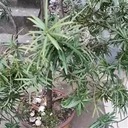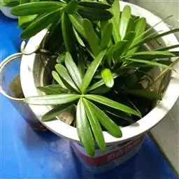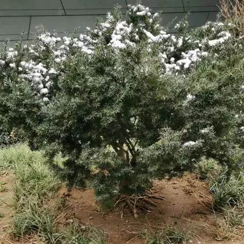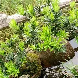 竹柏 竹柏深受庭园、住宅小区及街道绿化人员的选择,一般偏好用大苗移栽。株距以4米、6米为宜,也可根据实际需要确定。挖穴规格视苗木粗细而定,以0.5-0.8米见方,深0.4-0.6米为宜。移植前,应在穴底部施足基肥(也可在种植成活后追肥)。竹柏大苗起苗必须带土团,土团大小依苗木而定,一般胸径3-5厘米带土团直径为15-30厘米。起苗时,先挖去土团周围土壤,用草绳将土球上部缚牢并扎紧,以防土团松散。然后将底部土挖去,切断主根,轻抬至地面,再用草绳将整个土团缚好、扎牢。栽植前应合理修剪枝叶,以防水分蒸发造成干枯。苗木放人栽植穴后,应将草绳四周剪断,以利填土时紧密结合,并使草绳易腐烂,栽好时苗根际表土应高于地面5-10厘米,并浇透水一次,视移栽季节考虑蔽荫情况,成活率一般可达95%以上。