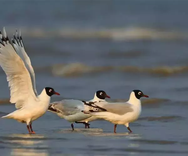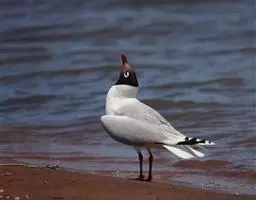 遗鸥(学名:Larus relictus)鸥科鸥属濒危候鸟,中型水禽,体长为40厘米左右。成鸟夏羽:整个头部深棕褐色至黑色,上沿达后颈,下沿至下喉及前颈,深棕褐色由前向后逐渐过渡成纯黑色,与白色颈部相衔接。眼的上、下方及后缘具有显著的白斑,颈部白色;背淡灰色;腰、尾上覆羽和尾羽纯白色。