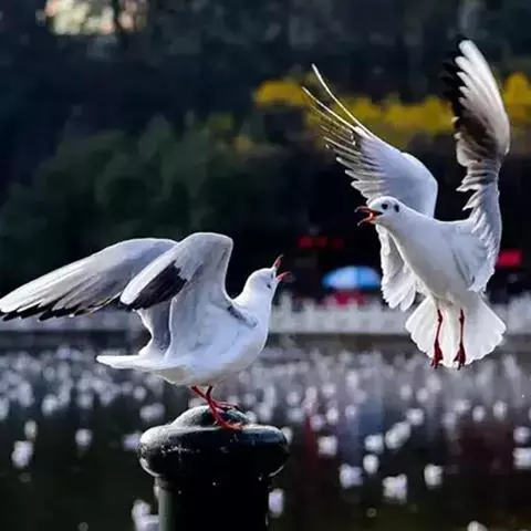天敌动物:猛禽的活动对处於繁殖状态的遗鸥所造成的间接危害是显而易见的,此外,湖周和沙丘上的中、小型食肉类可能对遗鸥更具危险性。