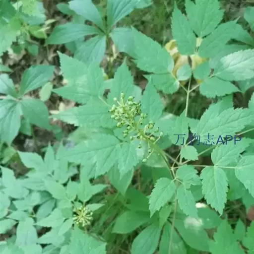 多年生草本。根状茎横走,质坚实,外皮黑褐色,生多数细长的根。茎高30-80厘米,圆柱形,粗4-(6-9)毫米,微具纵稜,下部无毛,中部以上被白色短柔毛,不分枝。叶2-3枚,茎下部的叶为三回三出?鹱锤匆叮叱け灰镀切危泶?27厘米;顶生小叶卵形至宽卵状菱形,长4-8.5厘米,宽3-8厘米,三裂边缘有锐锯齿,侧生小叶卵形至斜卵形,表面近无毛,背面变无毛;叶柄长10-17厘米。茎上部叶的形状似茎下部叶,但较小,具短柄。
