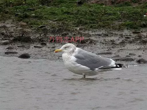 野外鉴别:大型水鸟,体长55-73cm。嘴黄色,下嘴尖端有一红斑。头、颈和下体白色,肩、背淡蓝灰色或鼠灰色,腰、尾上覆羽和尾白色,脚粉红色。飞行时翅前后缘白色,初级飞羽末端黑色,且具白色端斑。