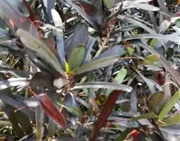 叶薄革质,长圆形,长9-13厘米,宽3-5厘米,先端短渐尖,有钝头,基部楔形,边缘有不规则浅波状锯齿,两面无毛,近同色,侧脉7-8对,网脉明显;叶柄长约1.5厘米,无毛。
