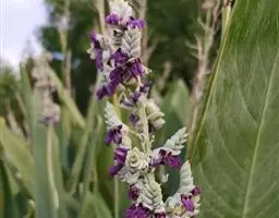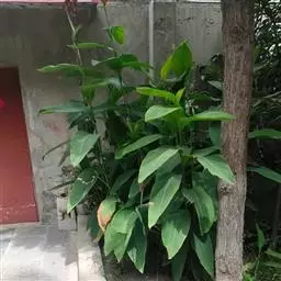 蕉芋:为美人蕉科的植物。多年生草本植物,高达3米。具块状根茎。茎紫色,直立,粗壮。叶互生;叶柄短;…