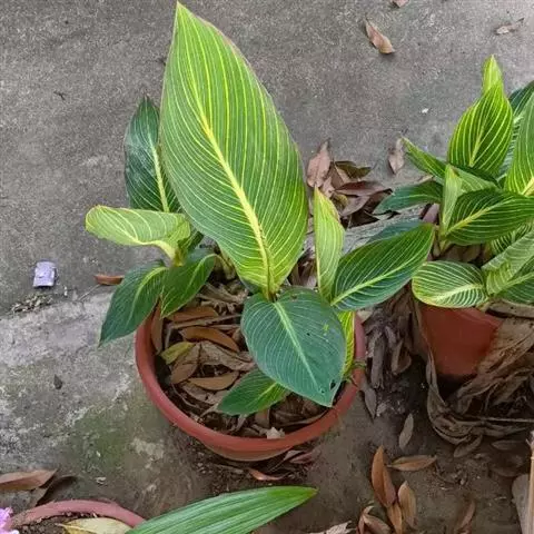 金脉美人蕉叶片淡黄色,叶脉绿化,叶缘具红边,全缘,大花美人蕉之变种