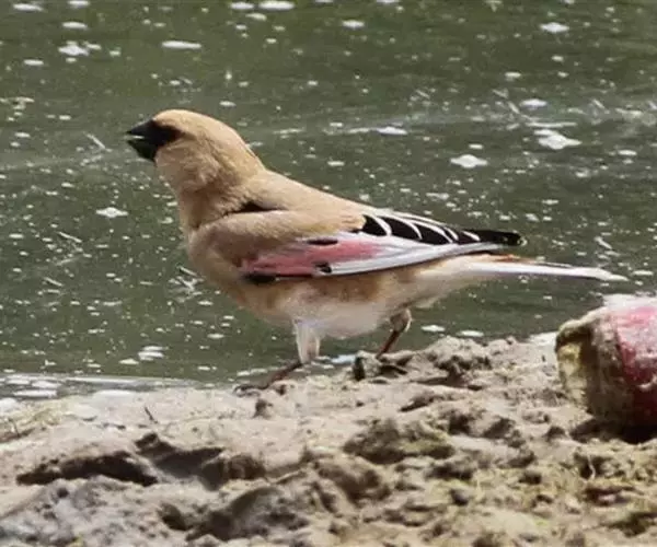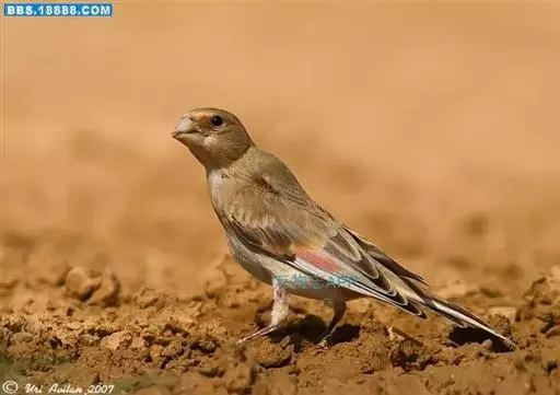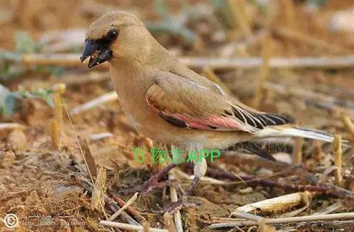 雌鸟和雄鸟相似,但上体更多皮黄色而少赭色,羽色较暗淡,翅上粉红色斑不显著,眼先不为黑色。