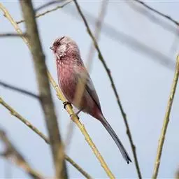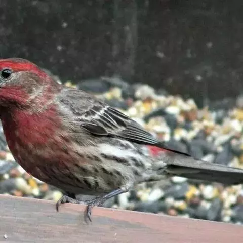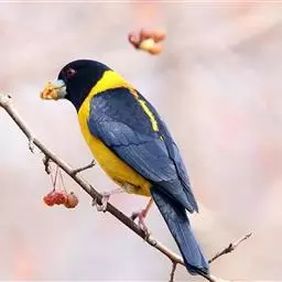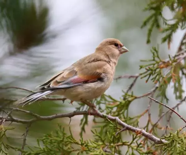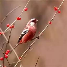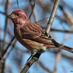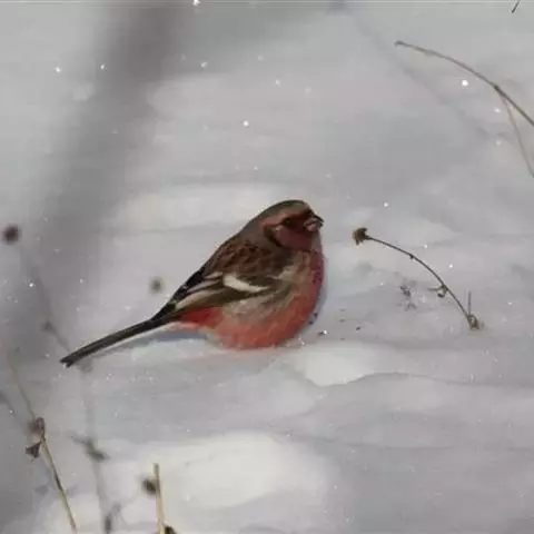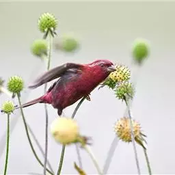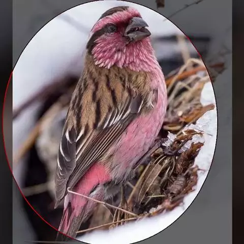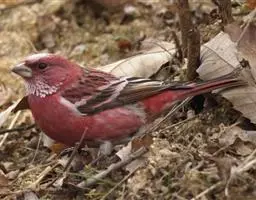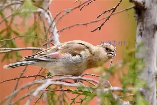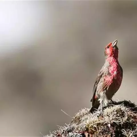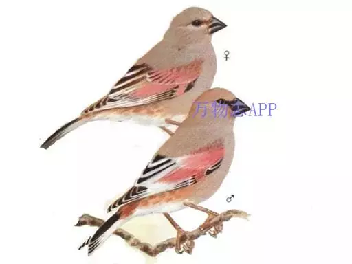 藏朱雀:全长约17-18厘米。雄鸟头部深红色具光辉,喉部暗红色具白色点斑;背部灰白色,各羽具玫瑰红…