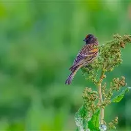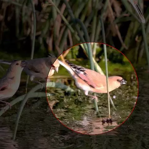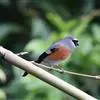 红眉朱雀:体长15厘米,是一种中等体型的朱雀。上体褐色斑驳,眉纹、脸颊、胸及腰淡紫粉,臀近白。…