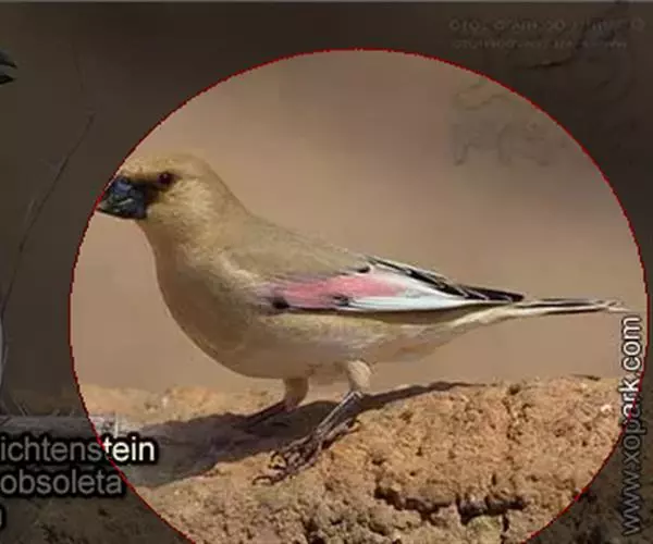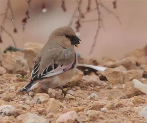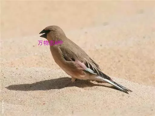 巨嘴沙雀(学名:Rhodopechys obsoleta)为雀科沙雀属的鸟类。体重21-30克,体长132-162毫米。两翼粉红,嘴亮黑,翼及尾羽黑而带白色及粉红色羽缘,具厚大的黄嘴,两翼及眼周绯红。雄鸟头顶黑褐,背褐有黑色纵纹,腰褐而沾粉红;眼周绯红,颊褐,眉纹。雌鸟似雄鸟但色暗且绯红色较少,雄鸟眼先黑色而雌鸟眼先无黑色。与所有相似种类的区别在体羽纯沙色且嘴黑。与其他沙雀的区别在色较深,体羽多杂斑,顶冠色深且嘴较厚。虹膜深褐色,嘴黑色,脚深褐色。