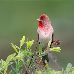 酒红朱雀小型鸟类,体长13~15厘米。雄鸟通体深红色,头部深朱红或棕红色,下背和腰玫瑰红色,…
