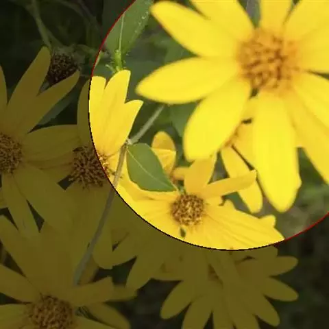 头状花序径约6cm,舌状花基部黄色,外有白、雪青、深红、玫瑰红、黄褐等色圈,管状花紫褐色;花期4-6月。