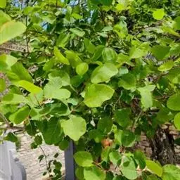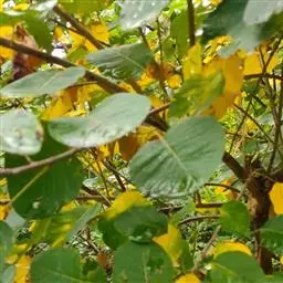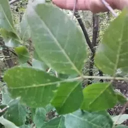 粉背黄栌叶卵圆形,较大,长3.5-10厘米,宽2.5-7.5厘米,无毛,但叶背显著被白粉;叶柄较长,…