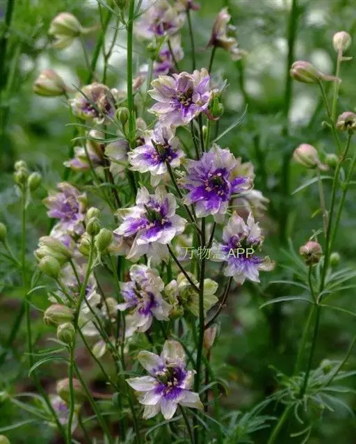 一年生草本,较耐寒,喜干燥,忌涝,宜深厚肥沃的砂质壤土,需日照充足、通风良好的凉爽环境。茎直立,上部疏生分枝,茎叶疏被柔毛。叶互生,茎生叶无柄,基生叶具长柄。总状花序顶生,花径约2.5厘米。作为花坛花,是一种具有直立型花穗的品种,在长穗上密布小花,让人感觉华贵,也是英国花园流派的代表型品种。名字由来据说来源于具有长管型的突出部位的花朵,犹如千鸟飞翔的样子。重瓣的花瓣和美丽的颜色,作为切花也是能保持较长的花期良好品种,栽培容易。