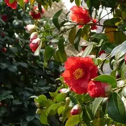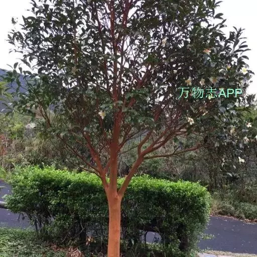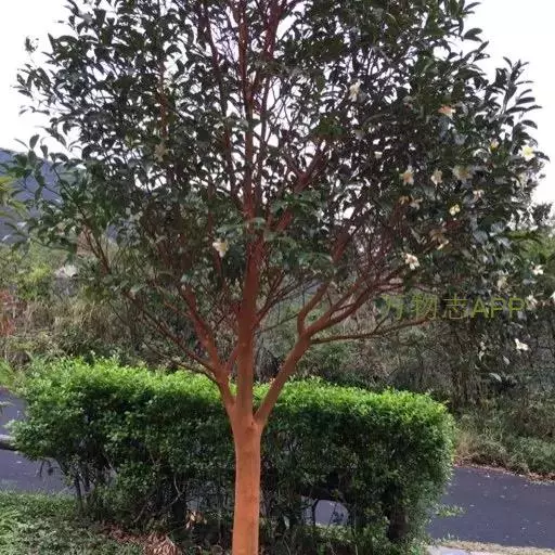 列植:红皮糙果茶树干挺拔,枝条自然下垂,树形优美,配置在道路两边作为行道树,形成了很好的夹景效果,开花之后,由于花大且密,又可形成白色花径;挂果之后,红褐色的茶果垂在枝条上,甚是可爱,可形成野趣横生的果径。