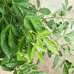 羽状复叶长8-14厘米,密集有19-41片小叶,托叶线形,长约1.5厘米,中部以下与叶柄基部贴生,疏被白色短柔毛;叶柄与叶轴疏被长柔毛,干后卷曲,宿存,小叶密生;几无小叶柄;叶片长圆形、卵形或几圆形,长3-11毫米,宽2-6毫米,先端圆,较少截平或微凹,基部显著偏斜,上面深绿色,下面灰白色,两面皆无毛。