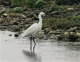 雪鹭(学名:Egretta thula):全身洁白的羽毛,颈背有丝状蓑羽。有一双亭亭玉立黄色长腿和一个黑色的鸟喙。在繁殖季节,鼻孔和眼睛之间的区域会由黄色变成红色。幼鸟类似成鸟,喙基略苍白,腿有背部绿色。嘴长而尖直,翅大而长,脚和趾均细长,胫部部分裸露,脚三趾在前一趾在后,中趾的爪上具梳状栉缘。雌雄同色。