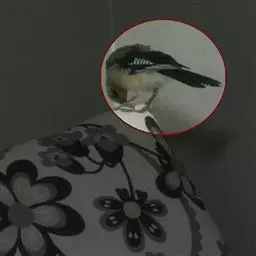 幼鸟头顶和羽冠白色,具黑色尖端,贯眼纹黑色,背暗褐色,杂有白色斑点。下体白色,喉和胸具暗色羽轴纹,覆腿羽具横斑,尾灰色,具两道宽阔的黑色横斑和黑色端斑。
