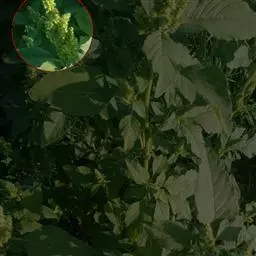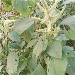 反枝苋是苋科苋属的一年生草本植物。株高达1米;茎密被柔毛;叶菱状卵形或椭圆状卵形,先端锐尖或尖凹,…