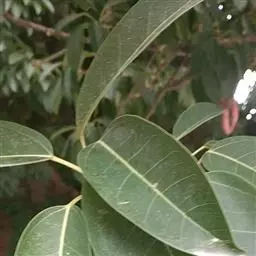印度榕,别名橡皮树,桑科榕属多年生常绿乔木植物。株高30米;树皮灰白色,平滑;叶厚革质,…