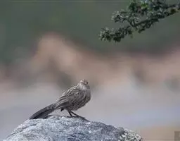 性吵嚷,结小至大群栖于森林树冠层或于浓密的棘丛。似喘息的群鸟叫声;轻柔的“teer、teer”联络叫声,告警时发“tzzz”声。兴奋时发出尖叫声及似笑叫声。