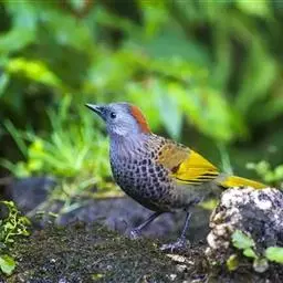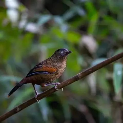 斑背噪鹛是噪眉科、噪鹛属中型鸟类,体长24-28厘米。额至头顶多为栗褐色,眼先、眼周和眼后纹均白色,…