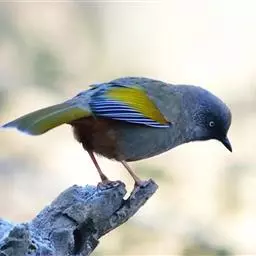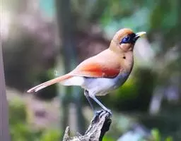 橙翅噪鹛:是噪鹛科、彩翼噪鹛属的中型鸟类,体长22-25厘米。头顶深葡萄灰色或沙褐色。上体灰橄榄褐色,…