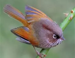 纹喉凤鹛:小型鸟类,体长13-16厘米。头顶和羽冠暗褐色或褐灰色,上体橄榄褐色,飞羽黑褐色,…