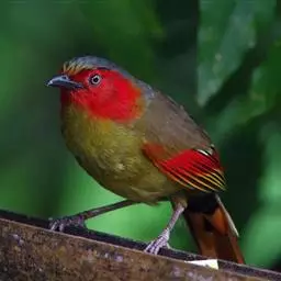 红翅薮鹛是噪眉科、薮鹛属中型鸟类,体长21-24厘米。头顶灰褐色,头侧和颈侧赤红色,上体橄榄褐色,…