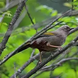 灰翅噪鹛中型鸟类,体长21~25厘米。额黑色,头顶黑或灰色,眼先、脸白色。上体橄榄褐至棕褐色,…