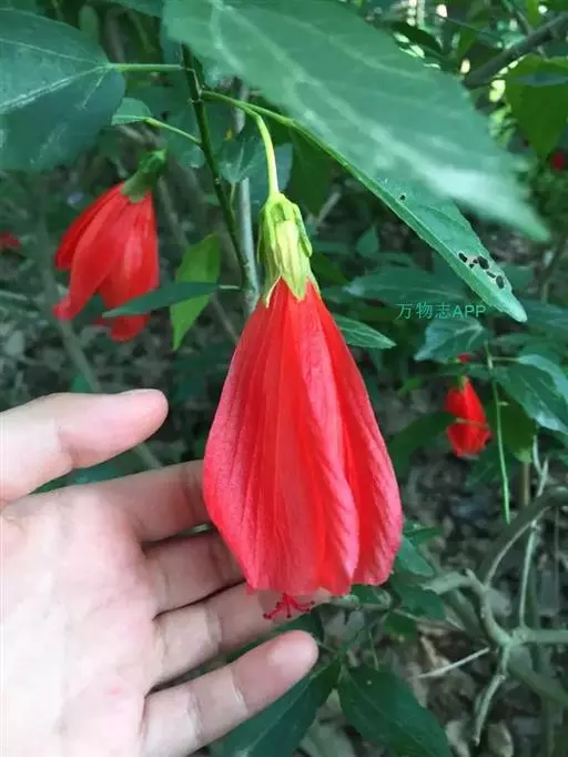 悬铃花,拉丁学名(Malvaviscus arboreus Cav.),属常绿小灌木。外型略似朱槿,高30-60cm,鲜红色花朵,较为奇特,花期终年、花量多。