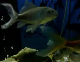 二人闻着奇香打马来到毡帐前,恭公爷翻下了马背,而自称见多识广的贝勒爷却像被人钉在了马背上一样—— 只见,帐前的草地上横着两条金黄色的大鱼,大的长达一丈五,小的也有七、八尺长。临时搭建起的木案上摆放若一条剖了腹的裸鲤,两个身强体壮的侍卫正站在木案的左右,把五尺多长的大锯架在裸鲤的身上,你推我拉地拽着,并不时发出吭哧吭哧的喘息声。站在他们身边的大厨则把解下来的鱼段用斧子剁成小块,一块一块地下进一口半个毡帐大的铁锅里。铁锅里的水已经开了,刚才贝勒爷闻到的香气正是从这口铁锅里散发出来的。恭格喇布坦见目瞪口呆的贝勒爷还立在马上,只好让侍卫将他搀下了马背,走到尚未宰杀的裸 裸鲤 鲤前看了个仔细。光溜溜的鱼身上有五道硬鳞,突出的嘴巴里半月形,两旁还有扁平的须。