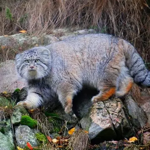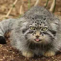 兔狲(学名:Otocolobus manul)体形粗短,大小似家猫,体重2~3千克,栖息于沙漠、荒漠、草原或戈壁地区,能适应寒冷、贫瘠的环境,常单独栖居于岩石缝里或利用旱獭的洞穴,通路弯曲,深2米以上。夜行性,多在黄昏开始活动和猎食。视觉和听觉发达,遇危险时则迅速逃窜或隐蔽在临时的土洞中。腹部的长毛和绒毛具有很好的保暖作用,有利于长时间地伏卧在冻土地或雪地上,伺机捕猎。叫声似家猫,但较粗野。主要以鼠类为食,也吃野兔、鼠兔、沙鸡等。