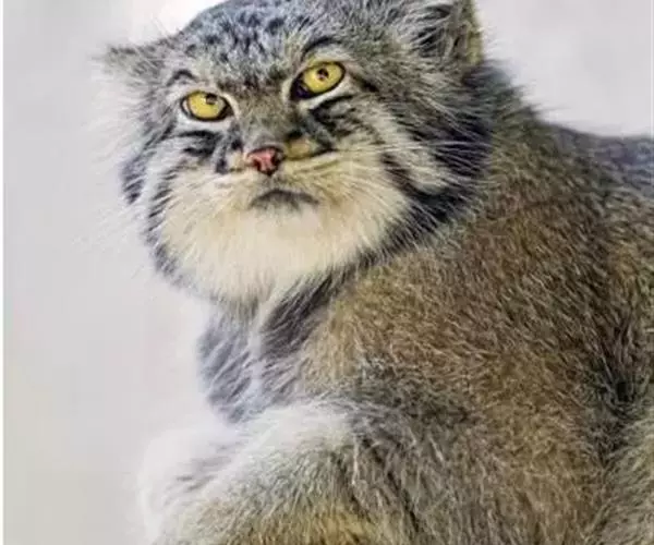 兔狲体重2千克,体长50-65厘米。体形粗壮而短,大小似家猫。兔狲的额部较宽,吻部很短,瞳孔为淡绿色,收缩时呈圆形,但上下方有小的裂隙,呈圆纺锤形。耳短宽,耳尖圆钝,两耳距离较远,耳背为红灰色。全身被毛极密而软,绒毛丰厚,尤其是腹部的毛很长,为背毛长度的一倍多。背中线棕黑色,体后部有较多隐暗的黑色细横放,头部灰色,带有一些黑斑,眼内角白色,颊部有两个细黑纹,下颌黄白色,体腹面乳白色,颈下方和前肢之间浅褐色,四肢颜色较背部稍淡,亦有2、3条短而模糊的黑色横放,尾巴粗圆,长度约为20-30厘米,上面有明显的 6-8条黑色的环细纹,尾巴的尖端长毛为黑色。幼仔身上横纹显着,比较宽而长,尾上有6条纹。
