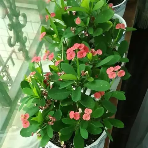 虎刺梅:别称铁海棠,是蔓生灌木植物。茎多分枝,长60-100厘米,直径5-10毫米,具纵棱,密生硬…