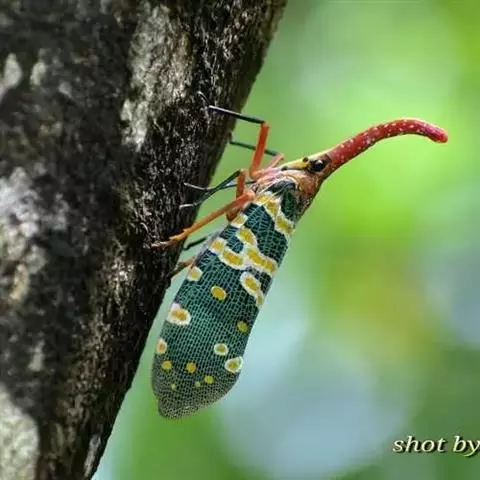 龙眼鸡是同翅目蜡蝉科蜡蝉属昆虫,又名龙眼蜡蝉、黄虫,长鼻子。体色艳丽;头额延伸如长鼻,额突背面红褐色,…