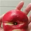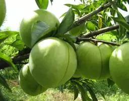 红芒果油桃树势中庸,因其果面红色,果形奇特像芒果而得名,优质、特早熟、甜香型黄肉油桃品种。中国 农业科学院郑州果树研究所培育。