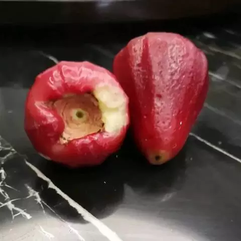 果个中等,平均单果重92-135克,果形长卵圆形,果皮底色黄,成熟后80%以上果面着玫瑰红色,较美观。