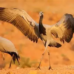 小鸨 对栖息地的选择,喜欢温暖干燥开阔草原和草地、农田、灌木丛等,能适应无水环境,但降雨常决定其繁殖的时间和场所。羽毛很松,说明其生活环境气候炎热。通过产生粉状绒毛以补偿尾脂腺丧失的功能,即在理羽时将粉涂到羽毛上使之不沾水。休息时腹部着地,从不在水中洗澡,但常拨土沙浴。繁殖时配对关系通常为单配,但仅在繁殖季节发生。求偶时雄鸟进行地面或空中炫耀并发出沙哑的叫声。在地面由雌鸟挖坑营巢,每窝产1—2枚或2—6枚卵,每年产1窝,孵卵期20—28天,仅由雌鸟孵卵和照顾幼鸟。1—6岁开始繁殖。