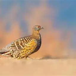 褐胸山鹧鸪:雄鸟体长22厘米,体重310克;雌鸟体长23厘米,体重220-275克。前额皮黄白色,…