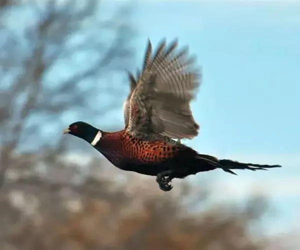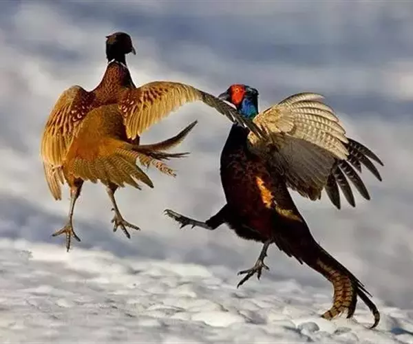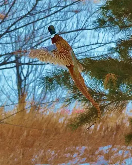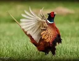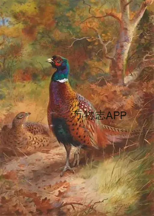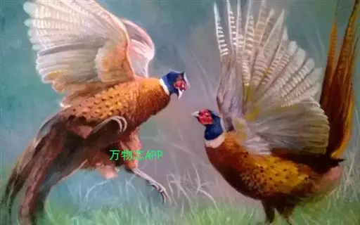 雉鸡(学名:Phasianus colchicus):共有30个亚种。体形较家鸡略小,但尾巴却长得多。雄鸟和雌鸟羽色不同,雄鸟羽色华丽,多具金属反光,头顶两侧各具有一束能耸立起而羽端呈方形的耳羽簇,下背和腰的羽毛边缘披散如发状;翅稍短圆;尾羽18枚,尾长而逐渐变尖,中央尾羽比外侧尾羽长得多,雄鸟尾羽羽缘分离如发状;雄鸟跗跖上有短而锐利的距,为格斗攻击的武器,近年来还发现距的长度与其所拥有的配偶数量明显相关,是雌鸟选择配偶的一个重要标准。