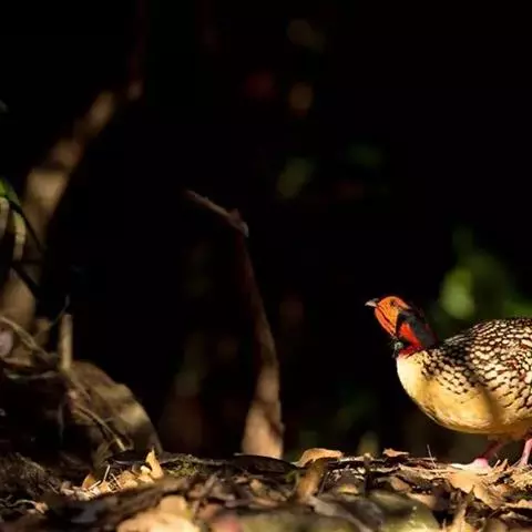 红腹角雉属于鸡形目雉科,雄鸟体羽及两翅主要为深栗红色,满布具黑缘的灰色眼状斑,下体灰斑大而色浅。雌…