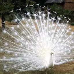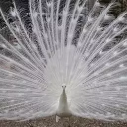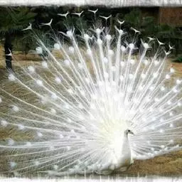 白孔雀,脊椎动物,鸟纲,雉科。其全身洁白无瑕,羽毛无杂色,…