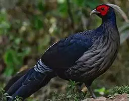 蓝马鸡是珍稀名贵的禽类,羽毛美丽,可作装饰用,头侧绯红,耳羽簇白色、突出于颈部顶上,通体蓝灰色,…