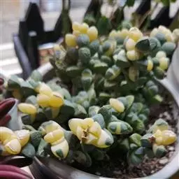 照波,番杏科多肉植物、此种生长较快,栽培容易,细长的浓绿色叶3厘米左右,开黄色花。…