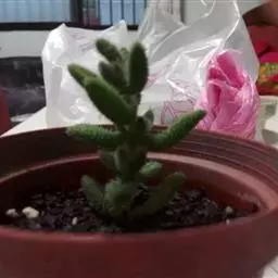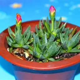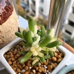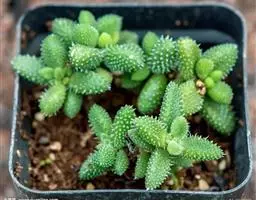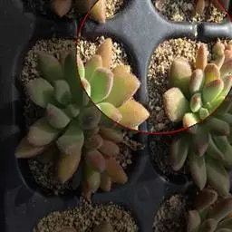 冬天气温低,盆土水分蒸发慢,浇水可间隔7-10天,等盆土干透了浇,在晴天的中午进行,水温15℃左右,浇前松土。过分缺水时叶体会缩小,叶色黯绿,叶端白色短毛变得明显。遇到这种情况,最好用15℃的温水浸盆4-5分钟,让根吸饱水,几个小时后叶体会膨大如初叶色翠绿依旧。冬天到春天及春天过渡到夏天时,气温在缓慢升高,盆土的水分蒸发也慢慢变快了,浇水间隔时间也应缩短,次数增多。原来4-5天浇一次的缩短至3-4天,3-4天ー次的缩短至2-3天。天气越热,浇水间隔时间越短,夏天1天要浇2次,早上8点以前1次,下年4-5点1次。酷暑期间晚上浇水可降低土温、增加湿度,有利于姬红小松度夏。初秋和中秋依然很热并干燥,浇水不可少,1-2天浇1次。深秋至初冬气温已明显降低,浇水间隔可延长到3-4天1次。浇水原则是干了就浇,浇则浇透,不要浇半截子水,表面湿了土中央依然是干,很容易导致植株干死。
