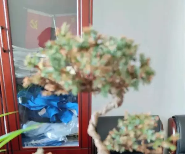 姬红小松搭配一个古色古香的釉盆,陈列在窗前、花架、几案上,可以给居家环境增加亮点。
