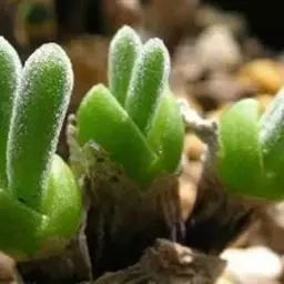 五十铃玉是番杏科窗玉属的多年生肉质植物,别名有“棒叶花”“婴儿脚趾”。植株高5厘米,叶片淡绿色,肉质,…
