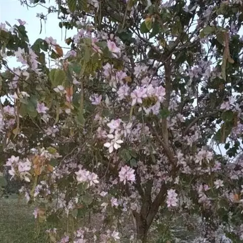 白花羊蹄甲(学名:Bauhinia variegata L.)羊蹄甲属,又名老白花皮,白花洋紫荆。叶近革质,花序总状或伞房状,顶生或侧生,总花梗短而粗,花托长12毫米,花蕾纺锤形;苞片及小苞片卵形,早落;花萼佛焰苞状,花大,花瓣白色或淡红色。花期3-5月,果期5-8月。