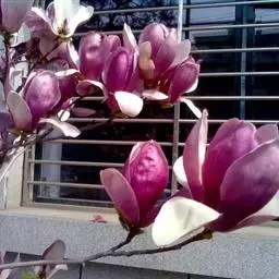 花蕾卵圆形,紫色,花白色或淡紫红色,芳香,直径7-10厘米,密被淡黄色长毛;花先叶开放,直立,芳香,盛开时直径7-8.8厘米;外轮萼状花被片披针形,长15-20毫米,宽2-3毫米,早落;内数轮瓣状花被片12-45,狭长圆状倒卵形,长4-5厘米,宽0.8-1.2厘米,花色多变,白色至紫红色。