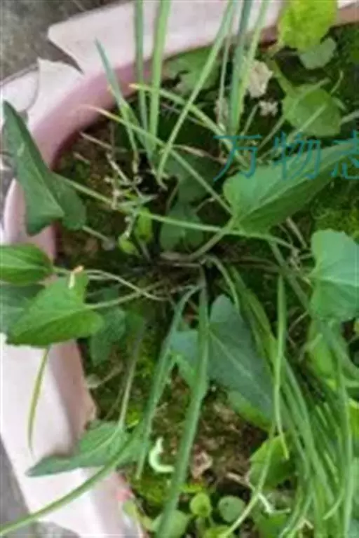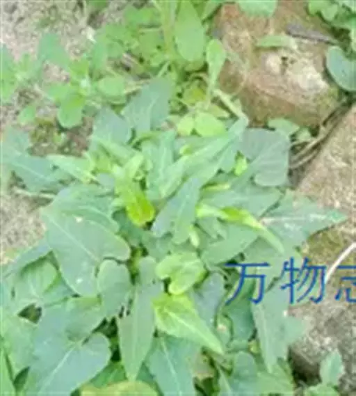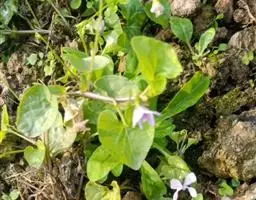 犁头草,别名心叶堇菜、玉如意、紫花地丁等,拉丁文名Viola japonica var. stenopetala Franch. ex H. Boissieu.多年生草本。主根粗短,白色。叶丛生,长卵形至三角状卵形,长2~6厘米,宽1.5~4厘米,先端钝,基部心形,边缘具钝锯齿,下面稍带紫色,两面及叶柄稍有毛或无毛。