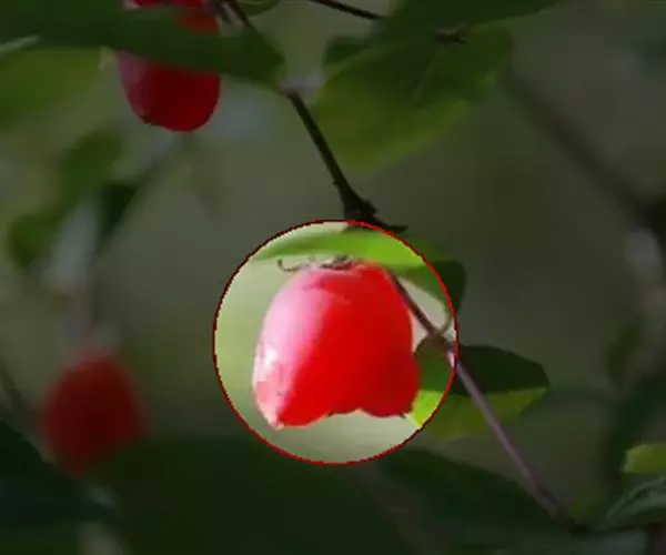 苦糖果具芳香;果实为合生果,形状为罕见的分权状,故名杈杷果,又因果实红艳,味美无核,亦名无核樱桃。平均单果重2.5克,果味浓甜芳香,含糖量高于刺梨、沙棘和称猴桃,而含酸量较低,糖酸比高达39:1。维生素C及钙、铁、磷、锌等矿质元素也高于一般水果,尤其磷含量较高。果汁用于美容、美发,效果颇佳。